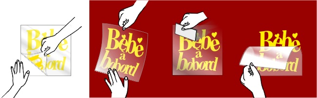 Marouflez soigneusement sans dépasser le film transfert transparent, (sinon vous risquez de rayer la carrosserie)