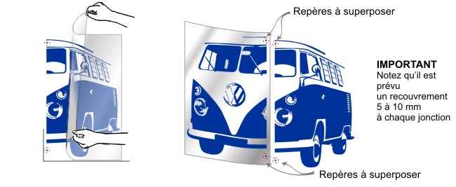 Un recouvrement des deux parties d’environ 5 mm est prévu. Il sera quasiment invisible une fois votre sticker posé.