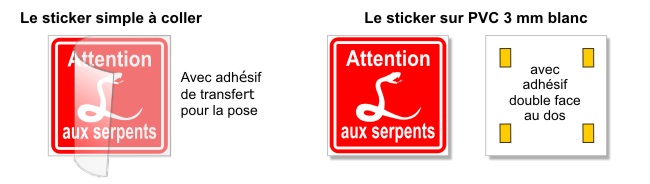 Notez que les dimensions des stickers sur PVC de 3 mm sont celles de la plaque PVC