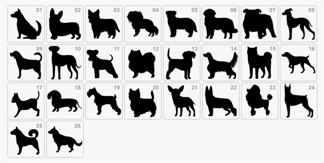 Vous pouvez choisir une silhouette parmi les 26 chiens ci-dessous.