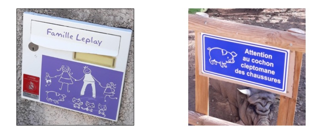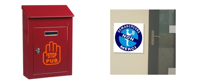 Voici ce que donne un sticker « simple à coller » posé sur une boite aux lettres (à gauche ci-dessous)