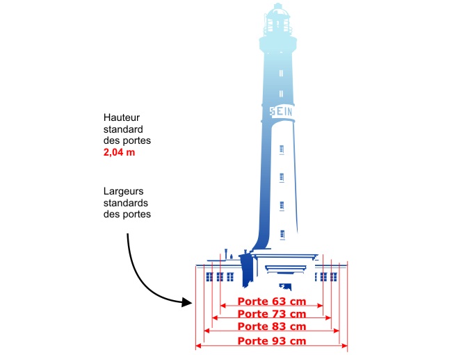 Ces dimensions correspondent aux largeurs classiques des portes : 63 cm / 73 cm / 83 cm / 93 cm