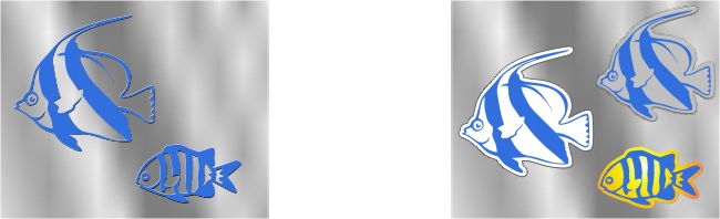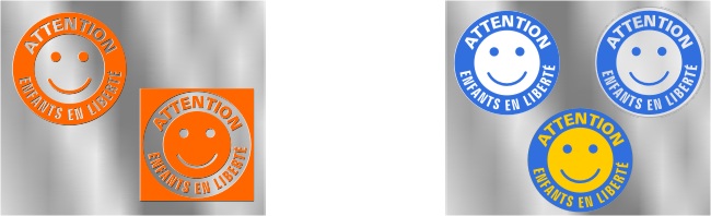 Pour le sticker découpé, la couleur de fond est transparente (baies vitrées, vitre de voiture…)